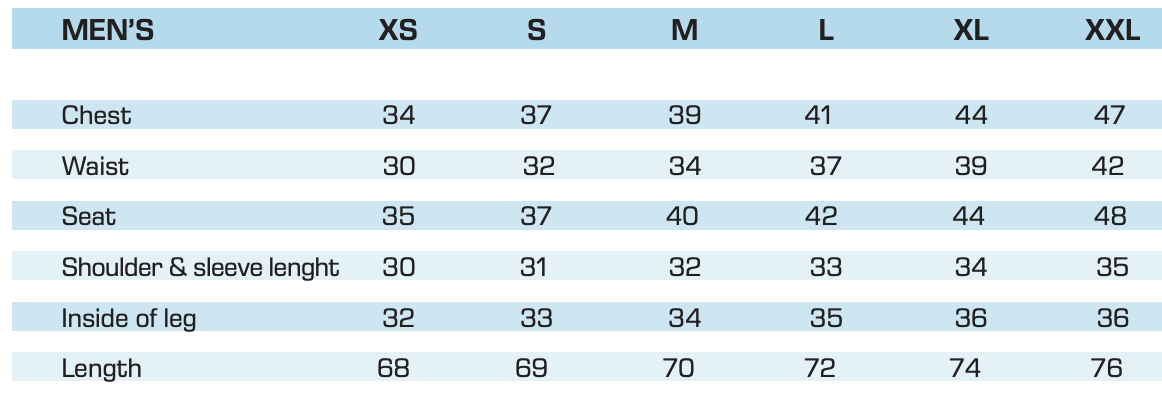 CRAFT CYCLING KIT SIZE CHART – “CLUB” FIT