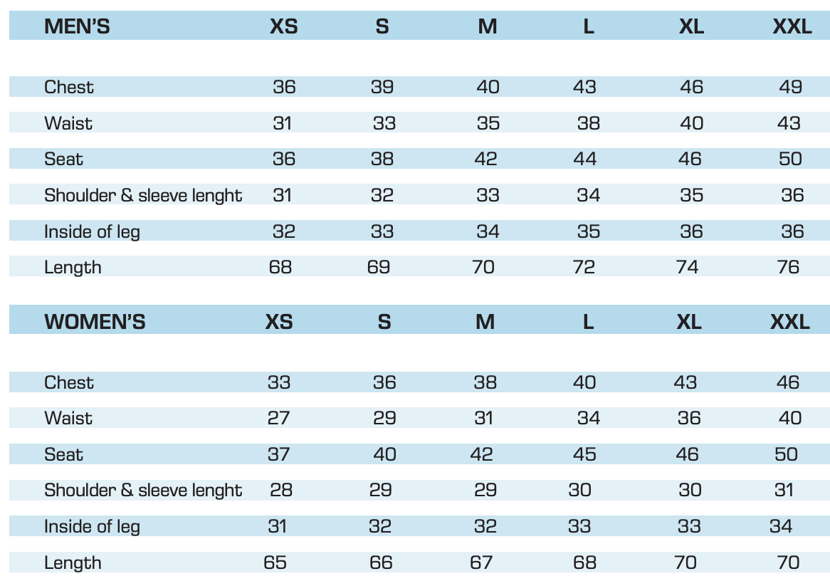 CRAFT CYCLING KIT SIZE CHART – “RACE” FIT