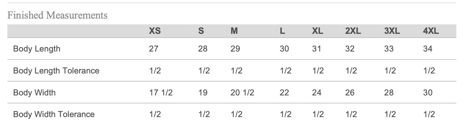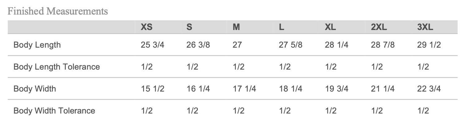NEXT LEVEL APPAREL UNISEX T-SHIRT SIZE CHART